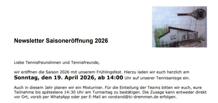 Am 21.04. findet in der Gaststätte Alt Dremmen die Jahreshauptversammlung statt.