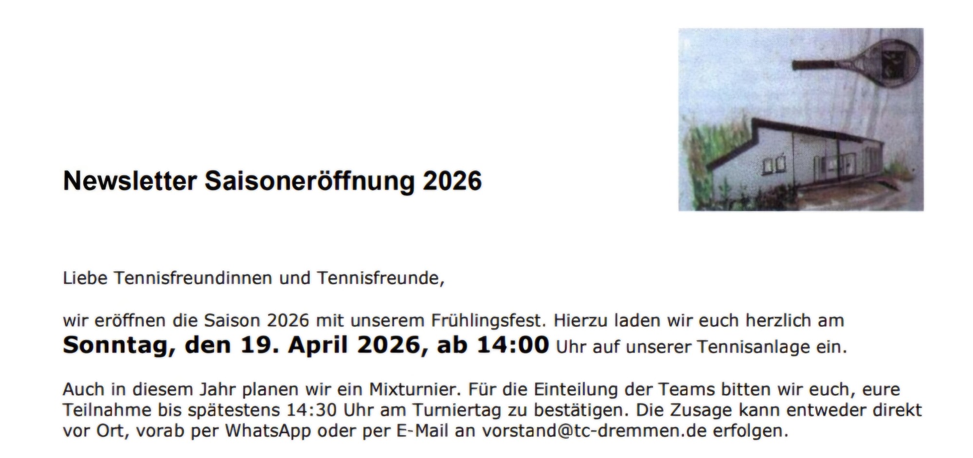 Am 21.04. findet in der Gaststätte Alt Dremmen die Jahreshauptversammlung statt.