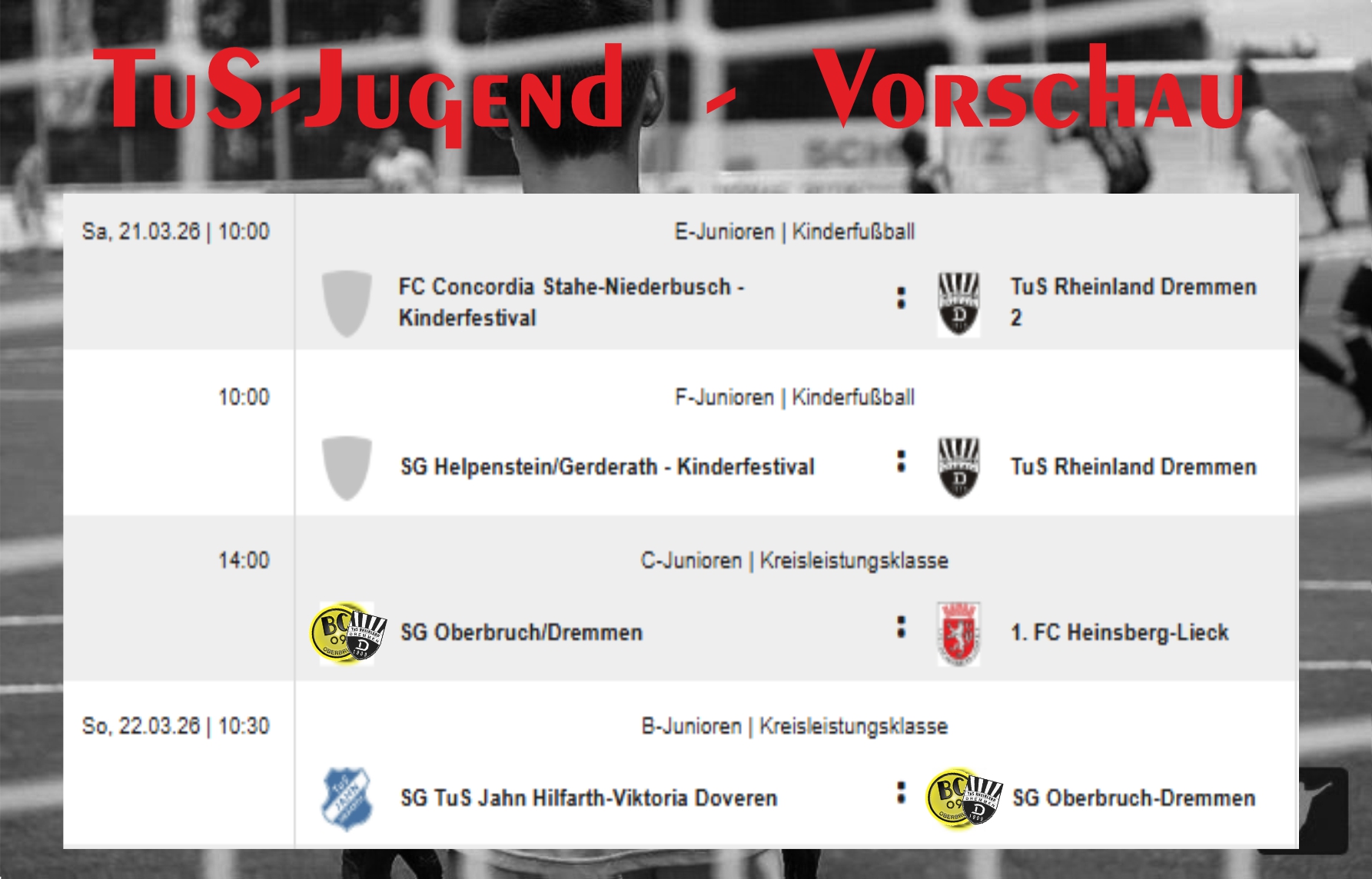 Erleben Sie die vielen Facetten von TuS Rheinland Dremmen. Unsere Abteilungen bieten für jeden etwas.