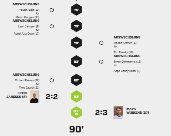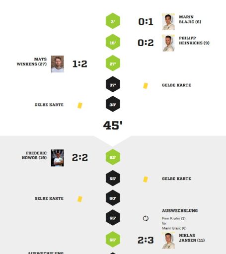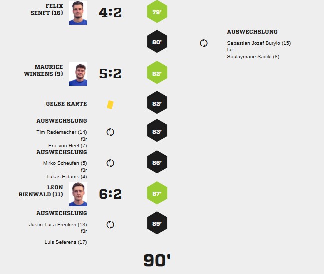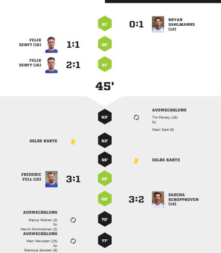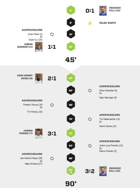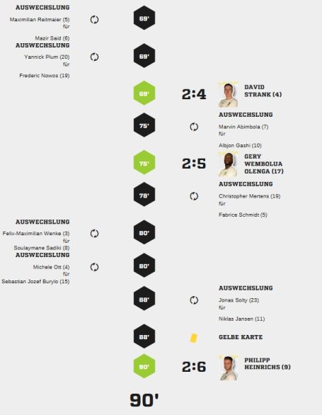 und baute die Führung erneut auf drei Tore aus. Yannick Plum und Roberto Marchese verkürzten in den letzten zwei Minuten zwar