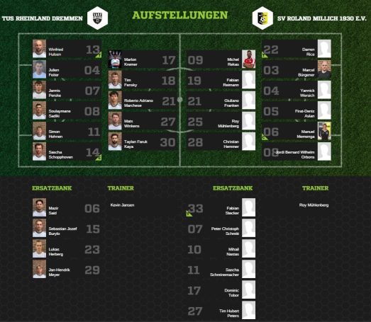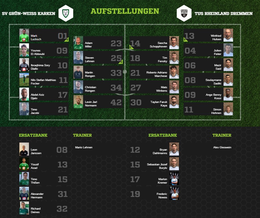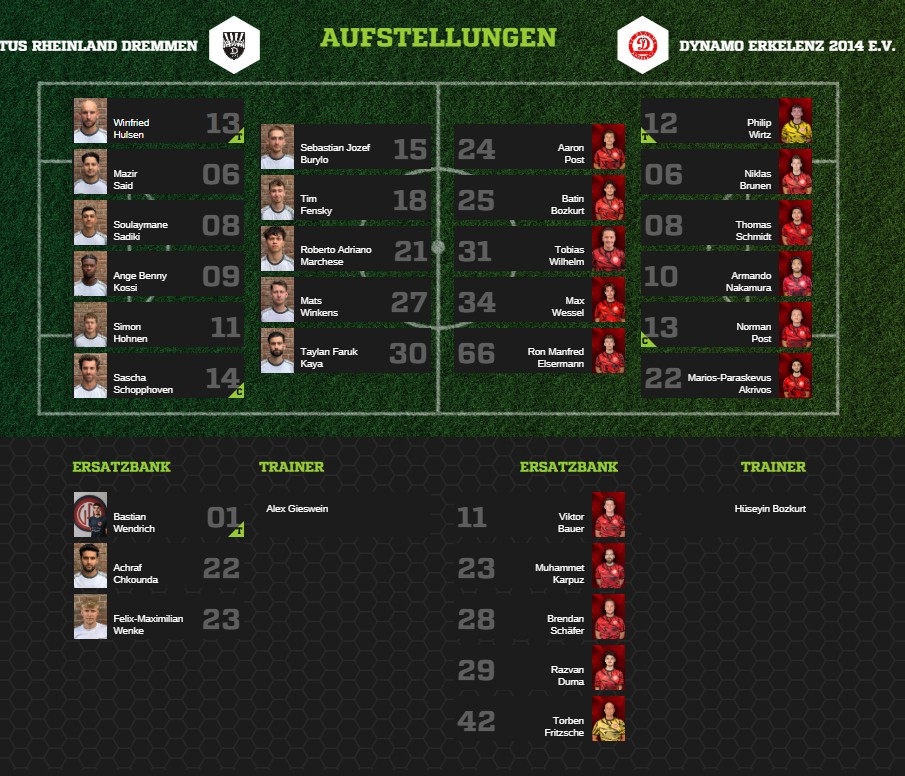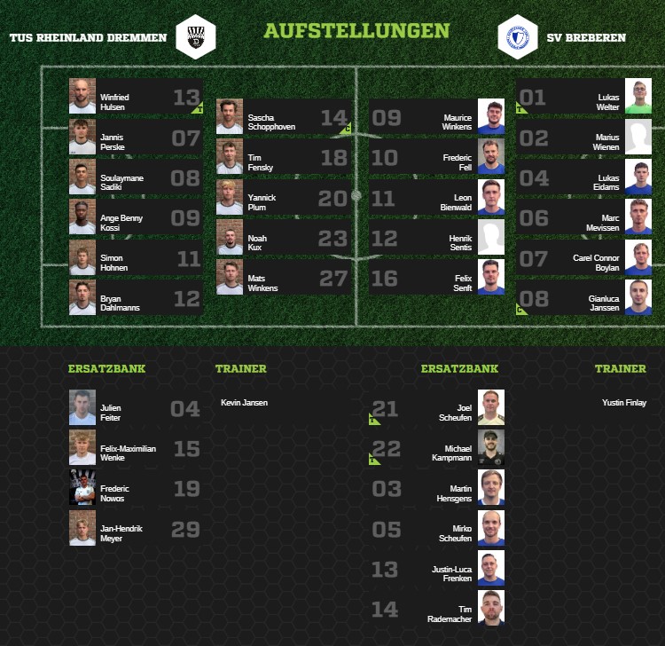 Dremmen wird versuchen, früh die Kontrolle über das Spiel zu übernehmen und den Gegner mit hohem Pressing unter Druck zu setzen. Besonders die schnellen Außenspieler und das starke Zentrum könnten eine entscheidende Rolle spielen. Zudem hat die Defensive zuletzt sicher gestanden und soll auch gegen Waldenrath-Straeten die Null halten.