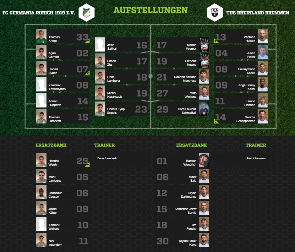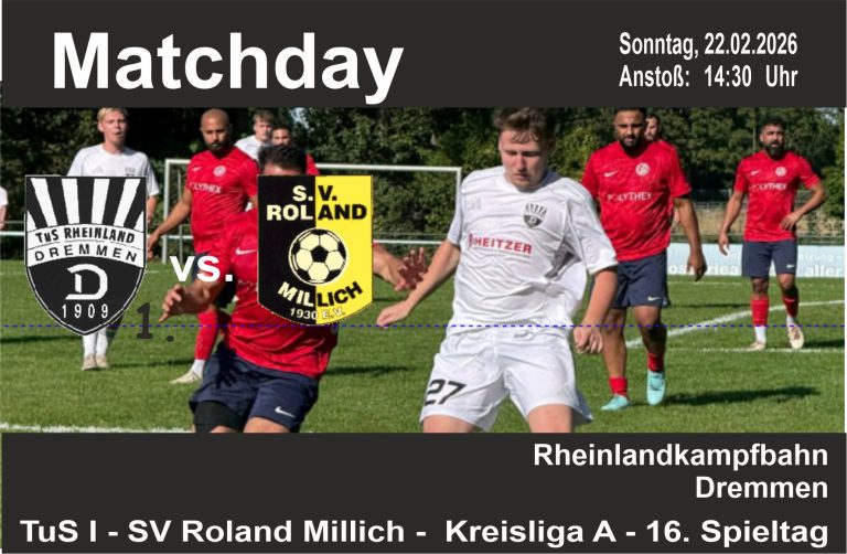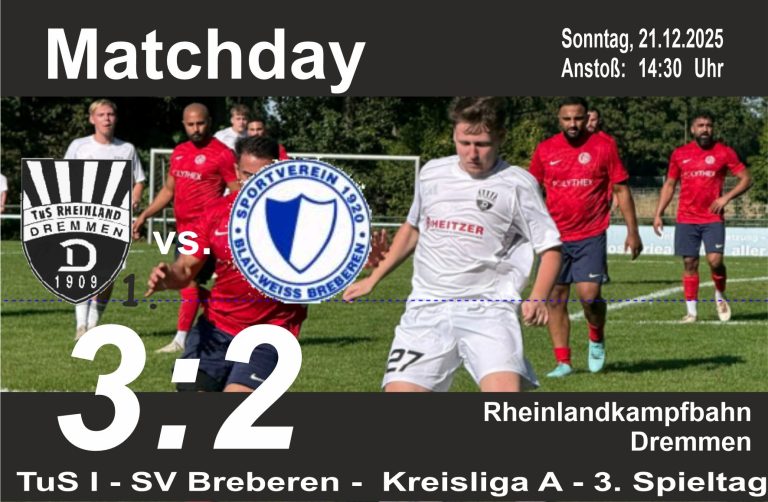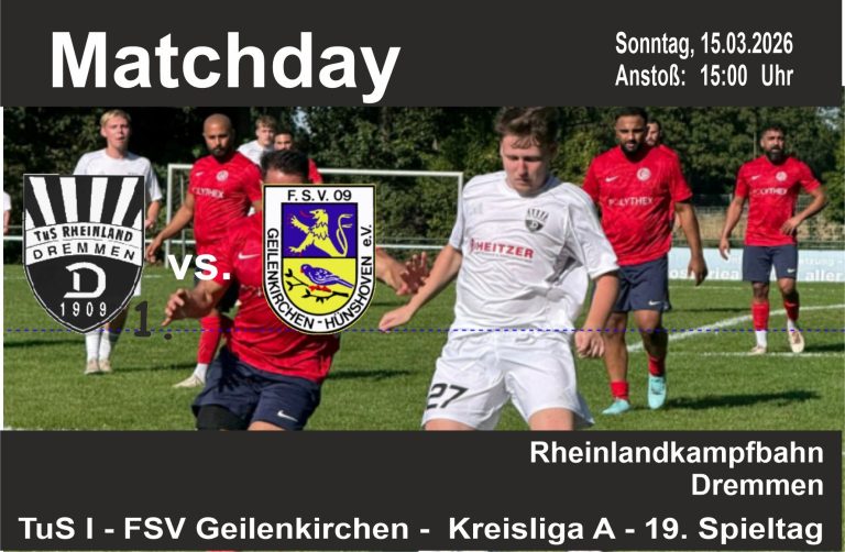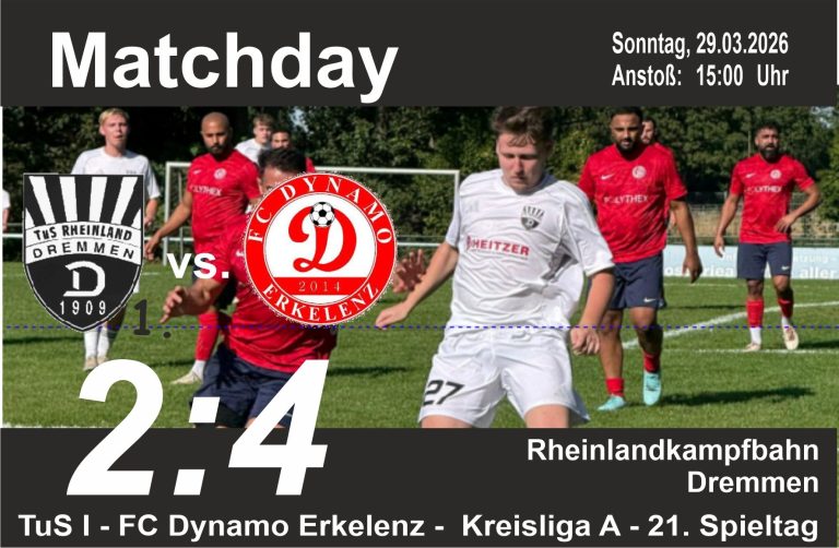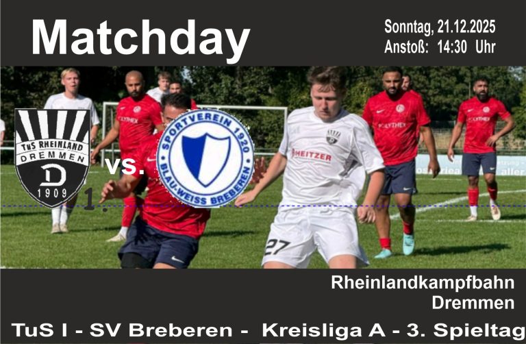Während FC Germania Rurich 1919 e.V. am nächsten Sonntag (15:00 Uhr) bei SV Breberen gastiert, duelliert sich der TuS Rheinland Dremmen zeitgleich mit Dynamo Erkelenz 2014 e.V.