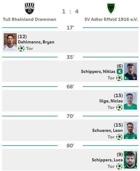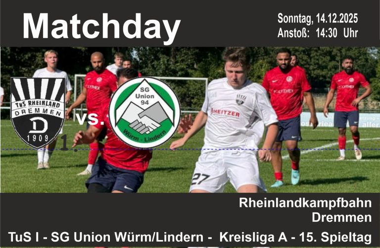 - 14:30 Uhr: Alemannia Mariadorf gegen TuS Rheinland Dremmen