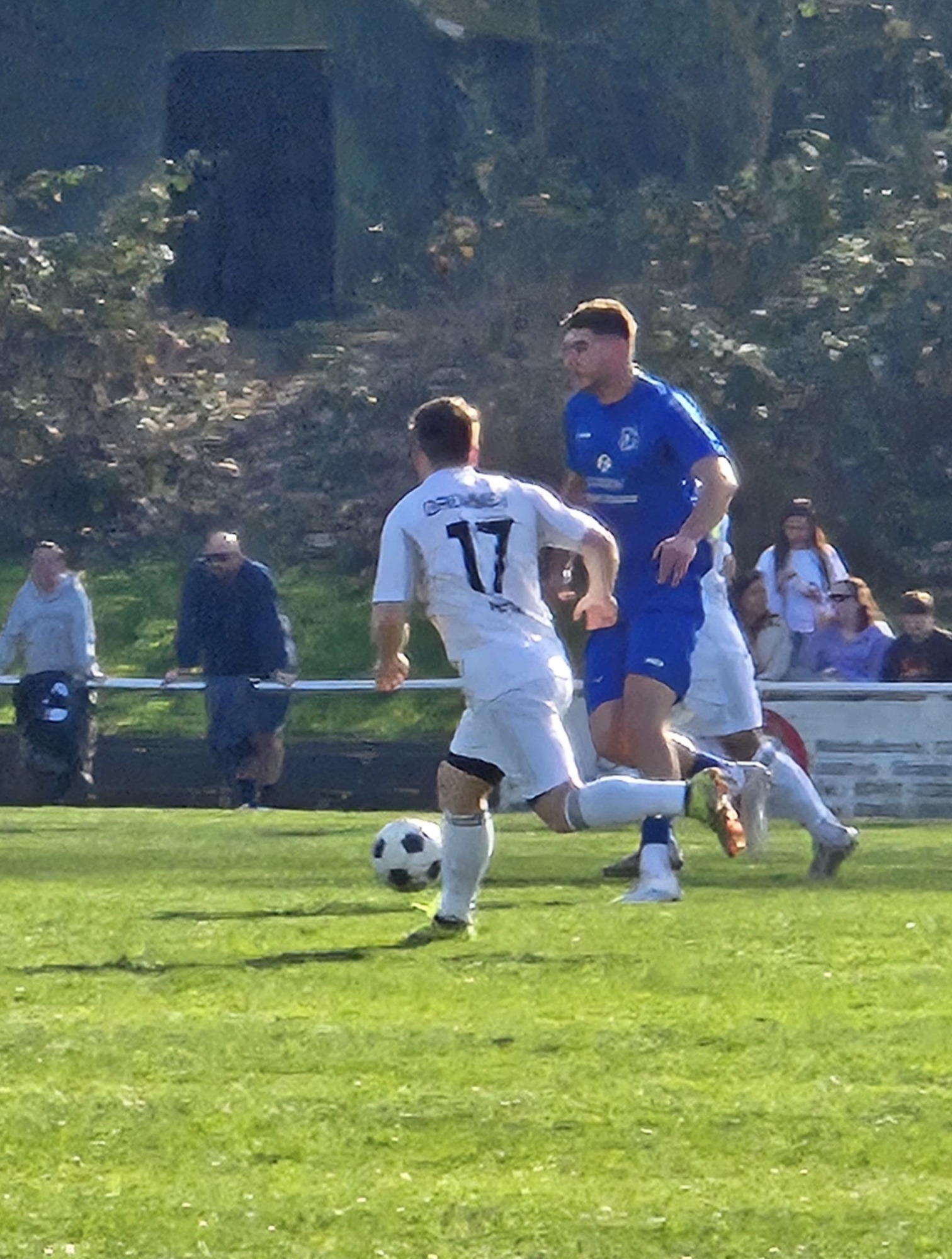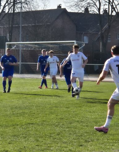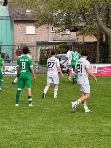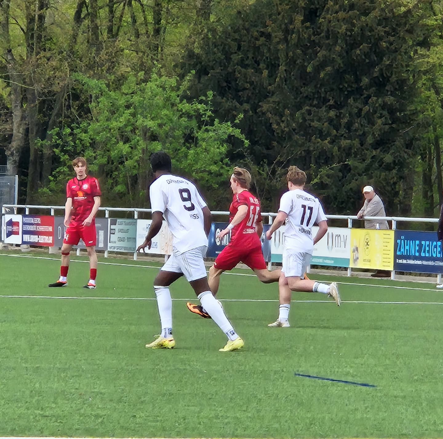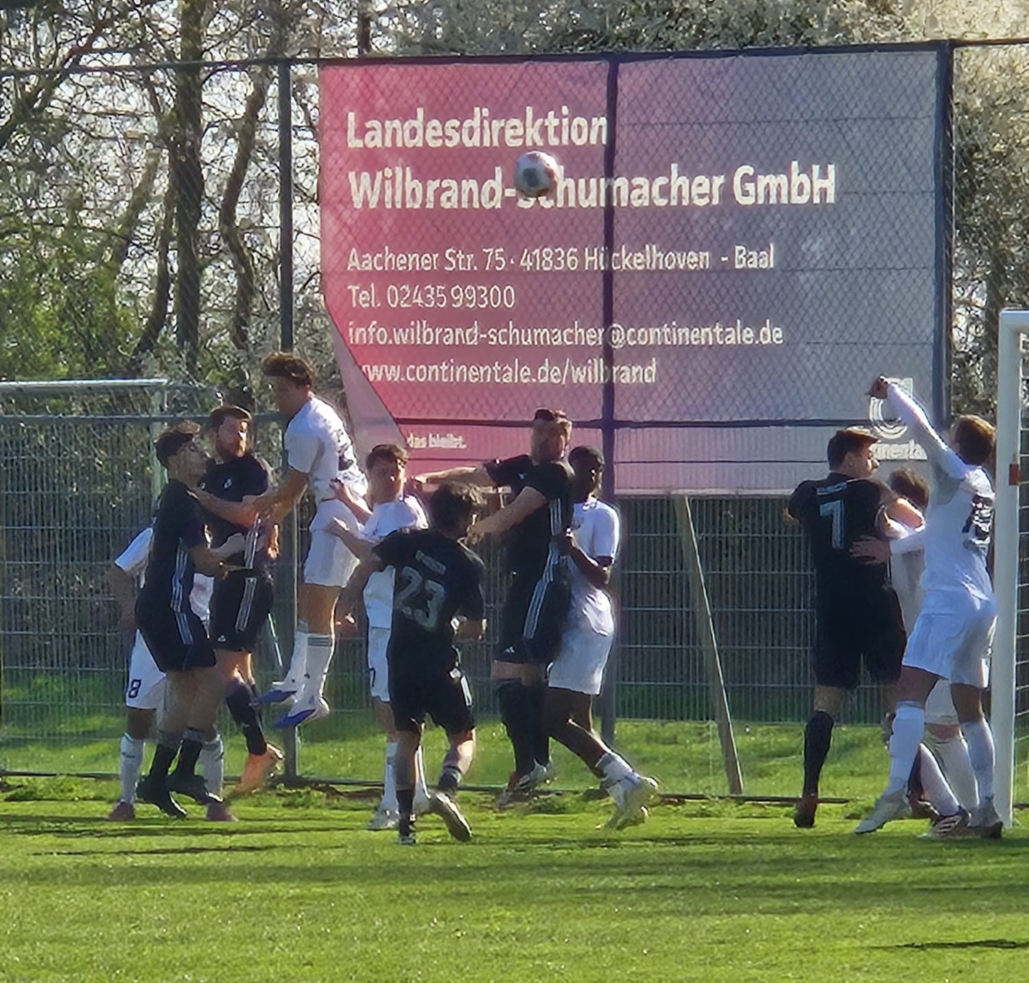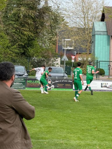 So auch einmal, als man den tiefstartenden Max Reitmaier auf der rechten Seite durchsteckte, der den Ball dann flach in den 5er brachte, wo ein Erkelenzer Bein ihn zum 1:1 über die Linie drückte.
