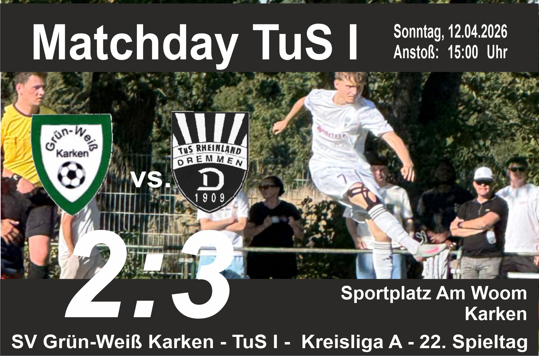 Sechs Pflichtspiele hat der TuS im Jahr 2026 absolviert. Keines dieser Spiele konnte gewonnen werden, lediglich zwei Punkte holte das Team in dieser Zeit. Der Trend zeigte in den letzten zwei Wochen aber wieder nach oben und mit dem Spiel beim SV Grün-Weiß Karken soll der erste Sieg in diesem Jahr eingefahren werden. Karken ging als Aufsteiger in die Saison und ist aktuell Tabellenschlusslicht mit gerade einmal neun Punkten und acht Punkten Rückstand auf die Nichtabstiegsplätze. Ärgerlich für den TuS, dass ausgerechnet einer dieser neun Punkte im Hinspiel in Dremmen geholt wurde.