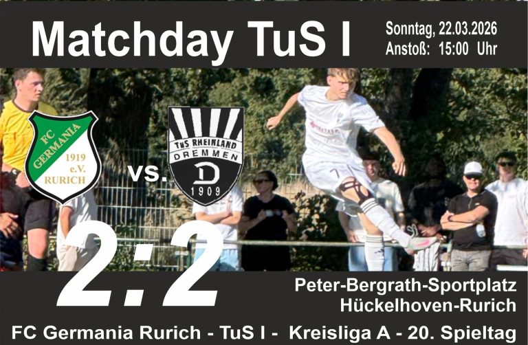 Die nächsten Aufgaben werden aber nicht leichter für den TuS. Am Sonntag geht es zum FC Germania Rurich, die einen Punkt weniger aufweisen und in diesem Jahr auch nur drei Punkte geholt haben, aber in diesen Spielen gegen die Topteams Dynamo Erkelenz, Selfkant, Brachelen und Würm/Lindern gespielt haben und in Erkelenz und gegen Würm/Lindern nah an Punktgewinnen dran waren. Im Hinblick auf die Aufgabe bei Dynamo Erkelenz wäre zumindest ein Punkte also auch schon viel wert für den TuS.
