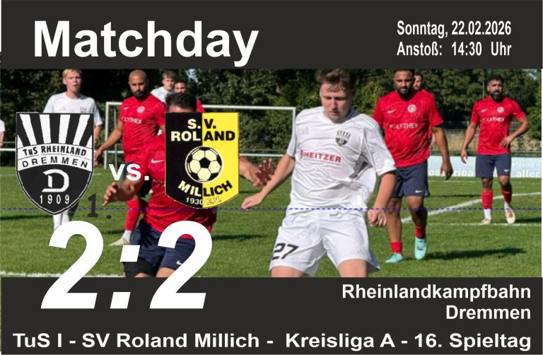 Im letzten Testspiel vor dem Rückrundenauftakt am Sonntag nach Karneval spielte der TuS in Dremmen gegen Concordia Birgelen.