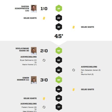 Dremmen fand nun etwas besser ins Spiel und konnte einige Angriffe starten, doch die Defensive des Gegners stand sicher. Kurz vor der Halbzeit musste die Mannschaft dann noch das 3:0 hinnehmen, womit der Pausenstand besiegelt war.