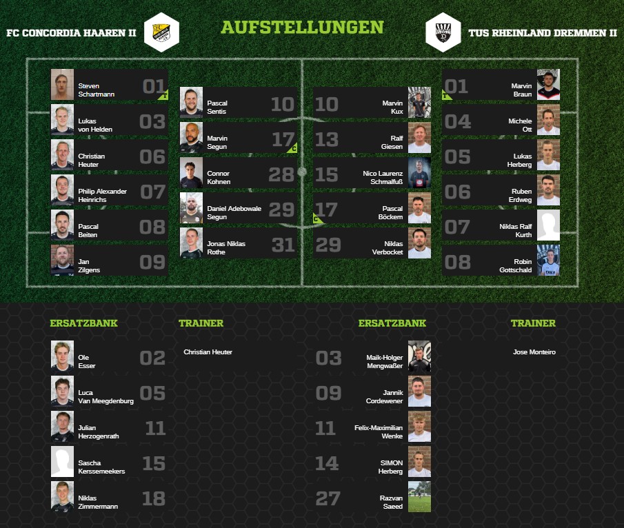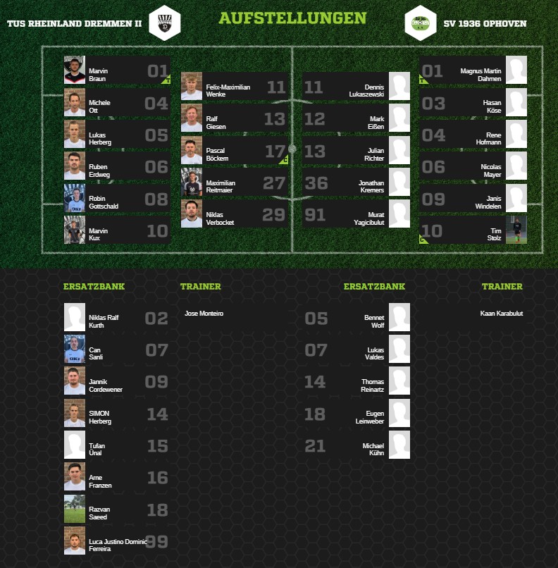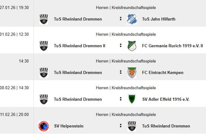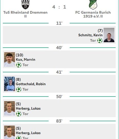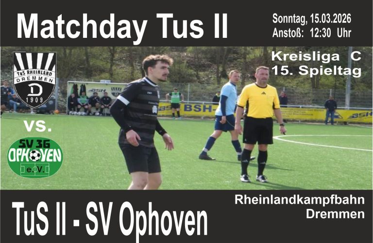 - 12:30 Uhr: TuS Rheinland Dremmen II gegen FC Germania Rurich 1919 e.V. II