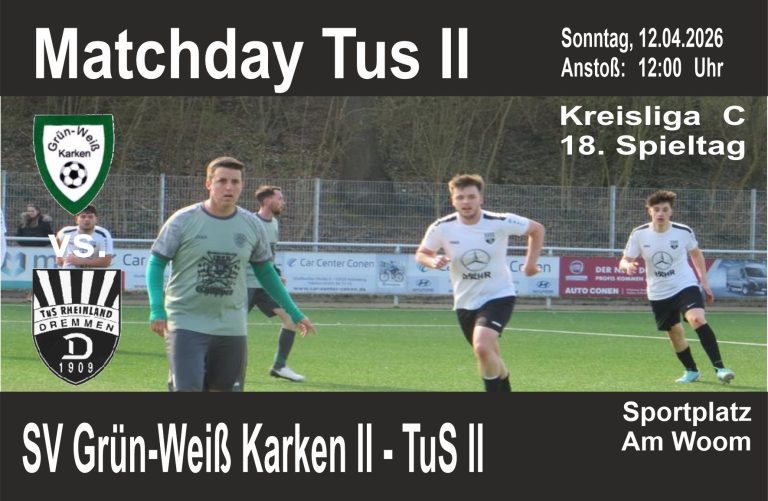 Die letzten zwei Spiele konnte der TuS II nicht gewinnen. Gegen die Topteams Oberbruch und Aphoven hielt man zwar gut mit, holte am Ende aber nur einen Zähler. Am Sonntag wartet mit Karken II das dritte Team aus den Top 4 in der Tabelle. Hier soll es, anders als in den letzten beiden Spielen, endlich ein Sieg gegen ein Topteam geholt werden. Karken II stieg im letzten Jahr auf, konnte im ersten Jahr nach dem Aufstieg schon in der Spitzengruppe platzieren und bestätigte diese Leistung nun auch im zweiten Jahr nach dem Aufstieg.