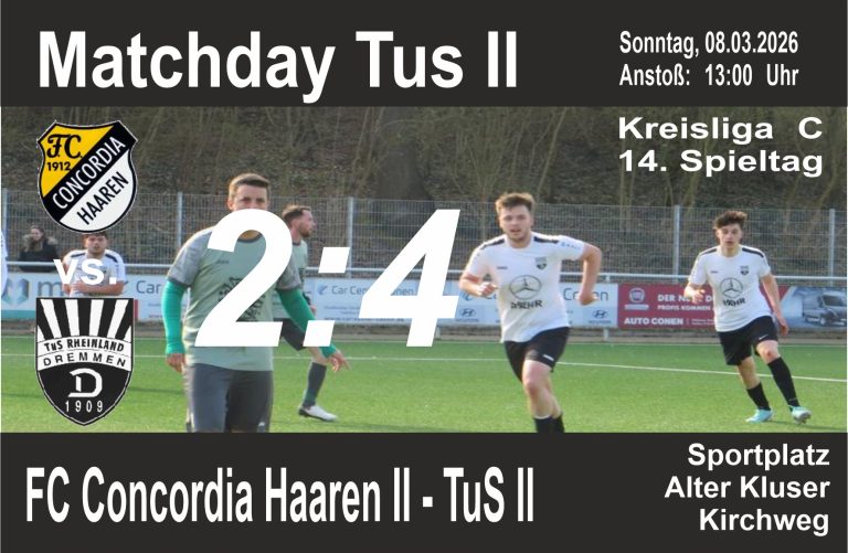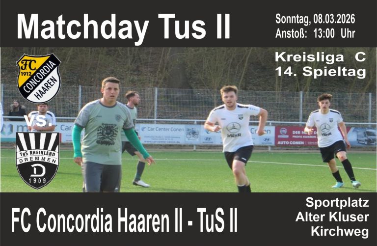 Ein wichtiges und richtungsweisendes Spiel warten beim Rückrundenauftakt auf den TuS II. Es geht zur Concordia aus Haaren. Die Haarener haben zum Ende der Hinrunde lediglich acht Punkte einfahren können und müssen Punkten um den Klassenerhalt zu schaffen. Der TuS hat aktuell fünf Punkte mehr auf dem Konto und würde bei einem Sieg schon ein großes Polster aufbauen können. Andererseits würde man bei einer Niederlage aber auch nur noch zwei Zähler mehr aufweisen. Dies zeigt also die Wichtigkeit dieser Begegnung. Das Hinspiel konnte der TuS deutlich für sich entscheiden und man hofft nun natürlich auf ein ähnliches Ergebnis.