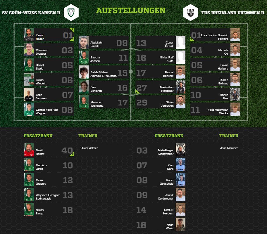 - 12:30 Uhr: TuS Rheinland Dremmen II gegen VfR Granterath 1919