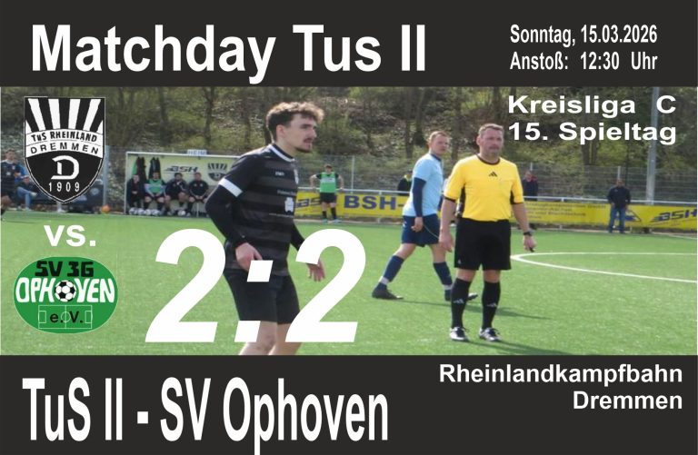Mit dem 2:2 gegen den SV Ophoven am letzten Sonntag verpasste es der TuS II sich eine noch bessere Ausgangsposition zu erspielen. Dennoch kann man mit 17 Punkten und aktuell neun Punkten Vorsprung schon etwas beruhigter in die nächsten Spiele gehen.