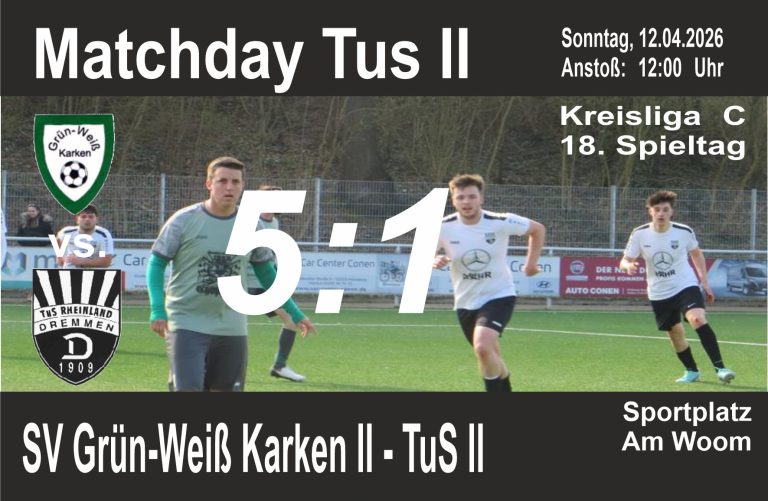Karken legte in der 71. Minute noch mit dem fünften Treffer nach und so endete die Partie mit einer klaren 1:5 Niederlage für den TuS II.