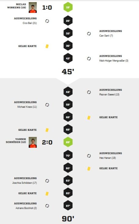 In der 72. Minute dann die erneute Führung für Hückelhoven und in der 80. Minute das 4:2, was die Vorentscheidung und dann auch den Endstand brachte.