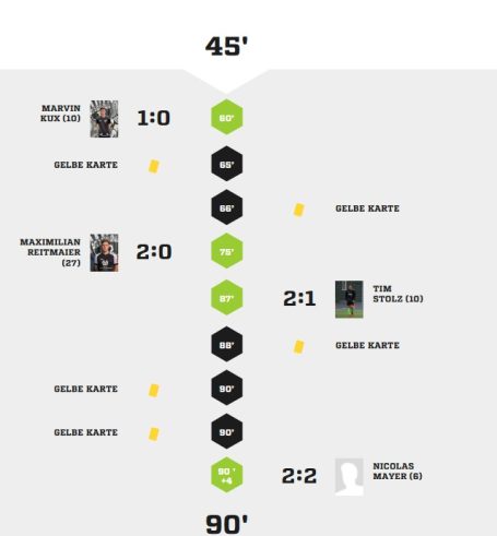 Maik Mengwasser sorgte zehn Minuten vor dem Ende für die erneute Führung des TuS, doch erneut Lambertz sorgte in der Nachspielzeit für den erneuten Ausgleich und den Endstand im Spiel.